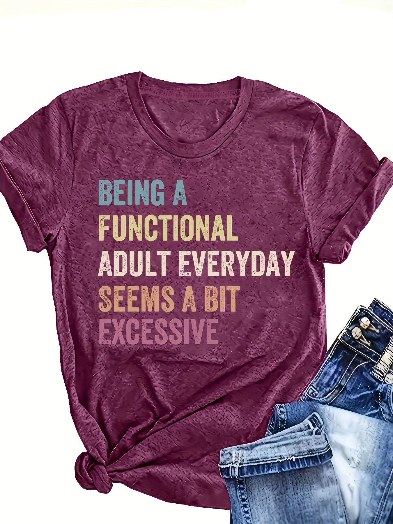 [Maroon Casual Tee] Maroon Relaxed Fit Women's Casual Short Sleeve T-Shirt | Bold Letter Print, Machine Washable, Versatile for Casual Attire, Comfortable Tee, Soft Texture, Durable Fabric