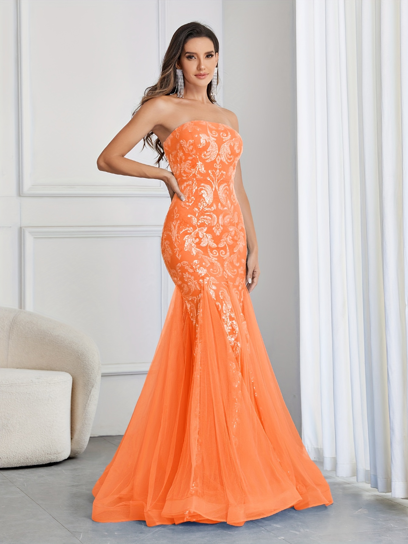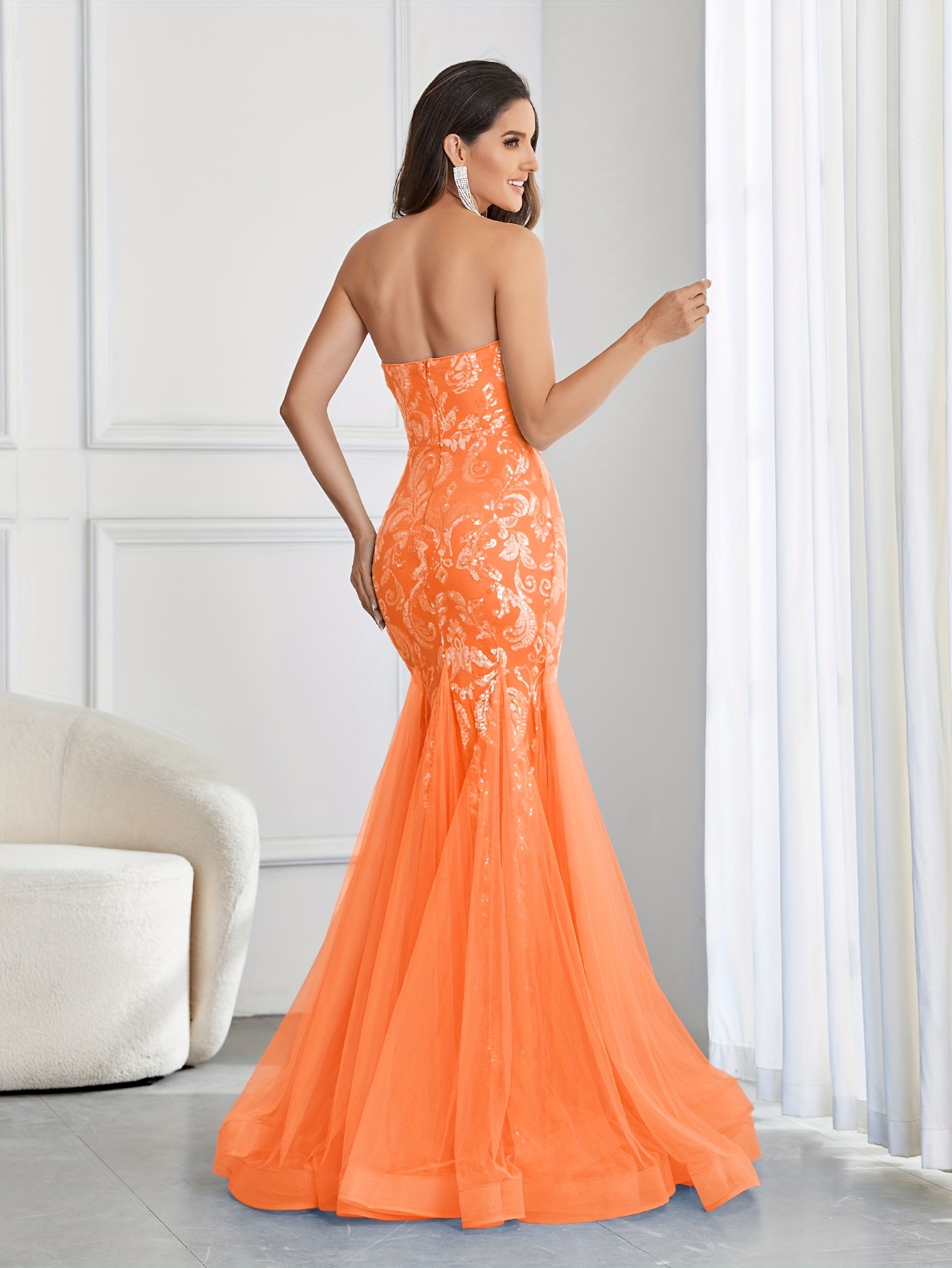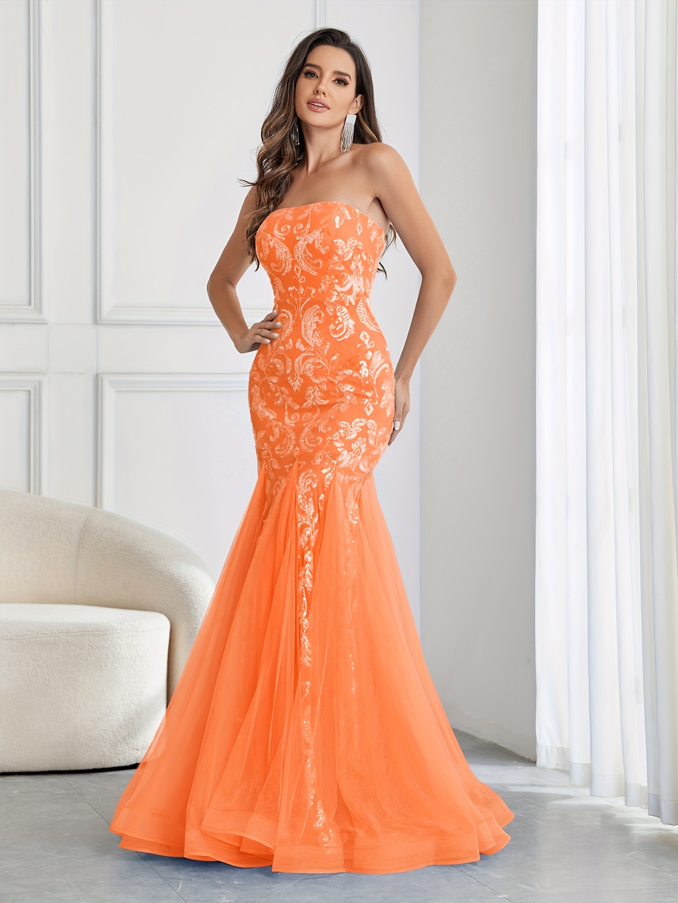 Stunning Sequined Mermaid Wedding Dress - Elegant Sleeveless Mesh Tube Gown for Party, Banquet, Engagement Ceremony, Wedding Occasion - Women's Formal Clothing for Special Events