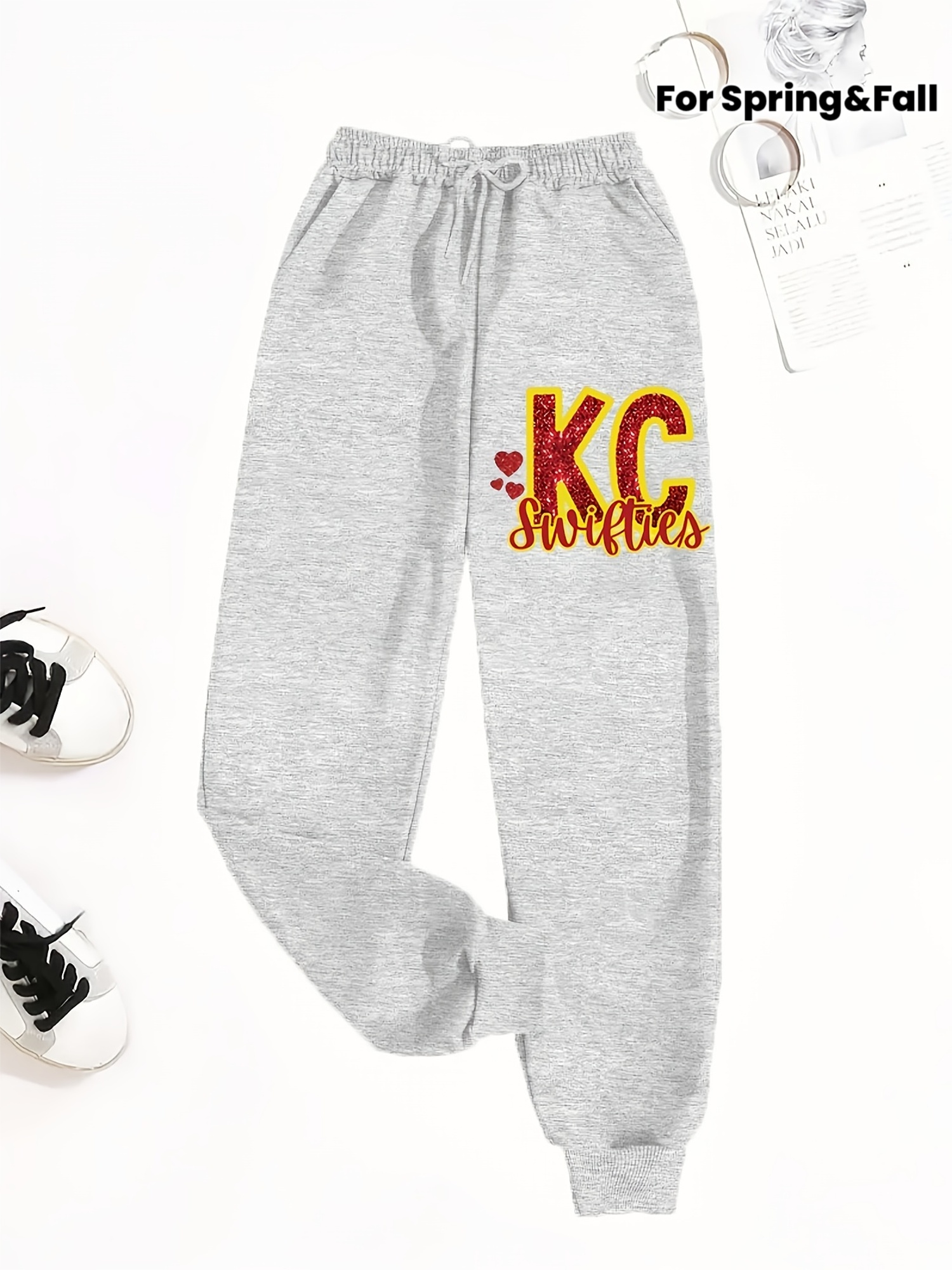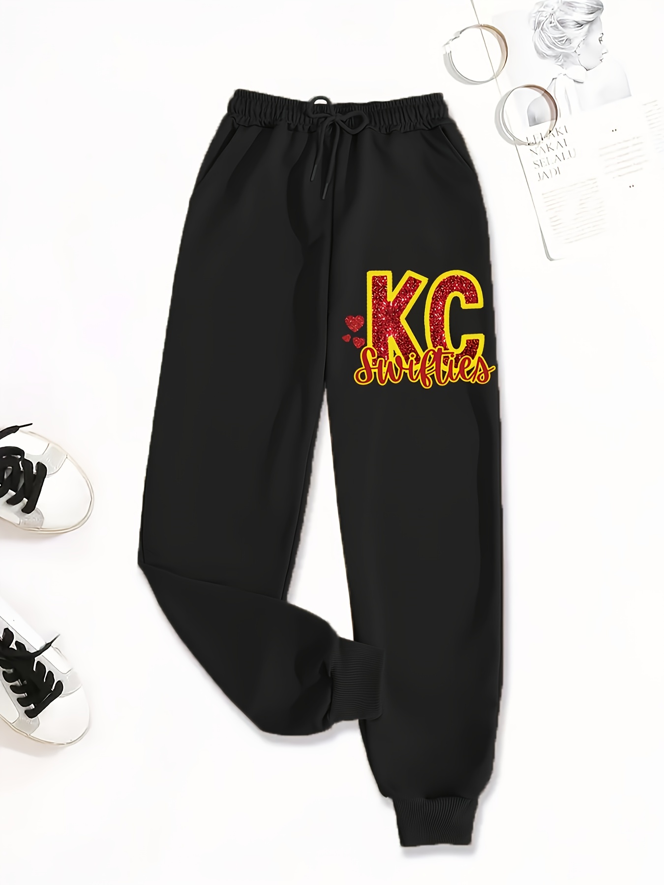 [Rugby Print Jogger Pants] Women's Casual Rugby Print Jogger Pants | Loose-Fit Drawstring Sports Trousers for Spring and Autumn | Machine Washable