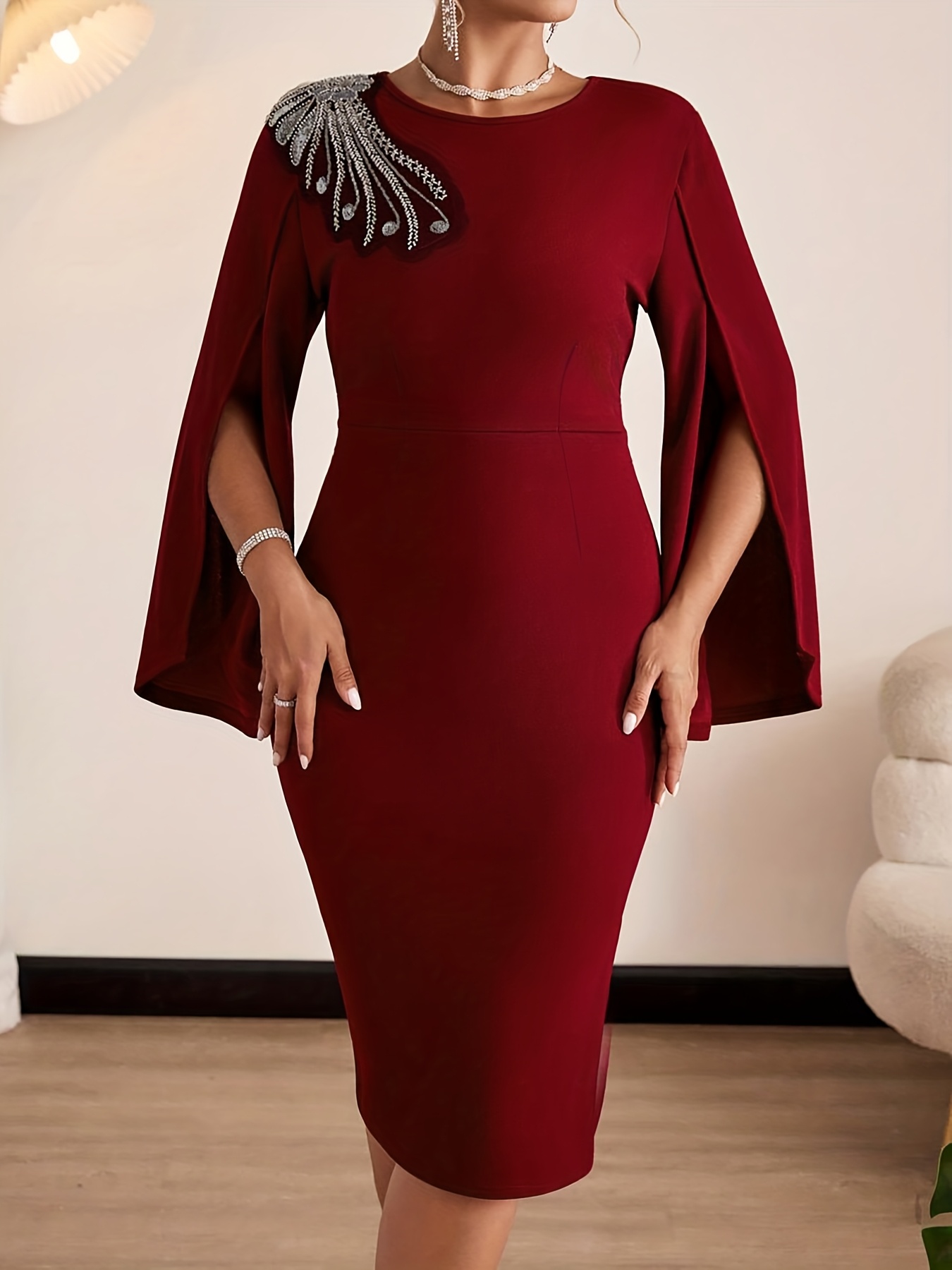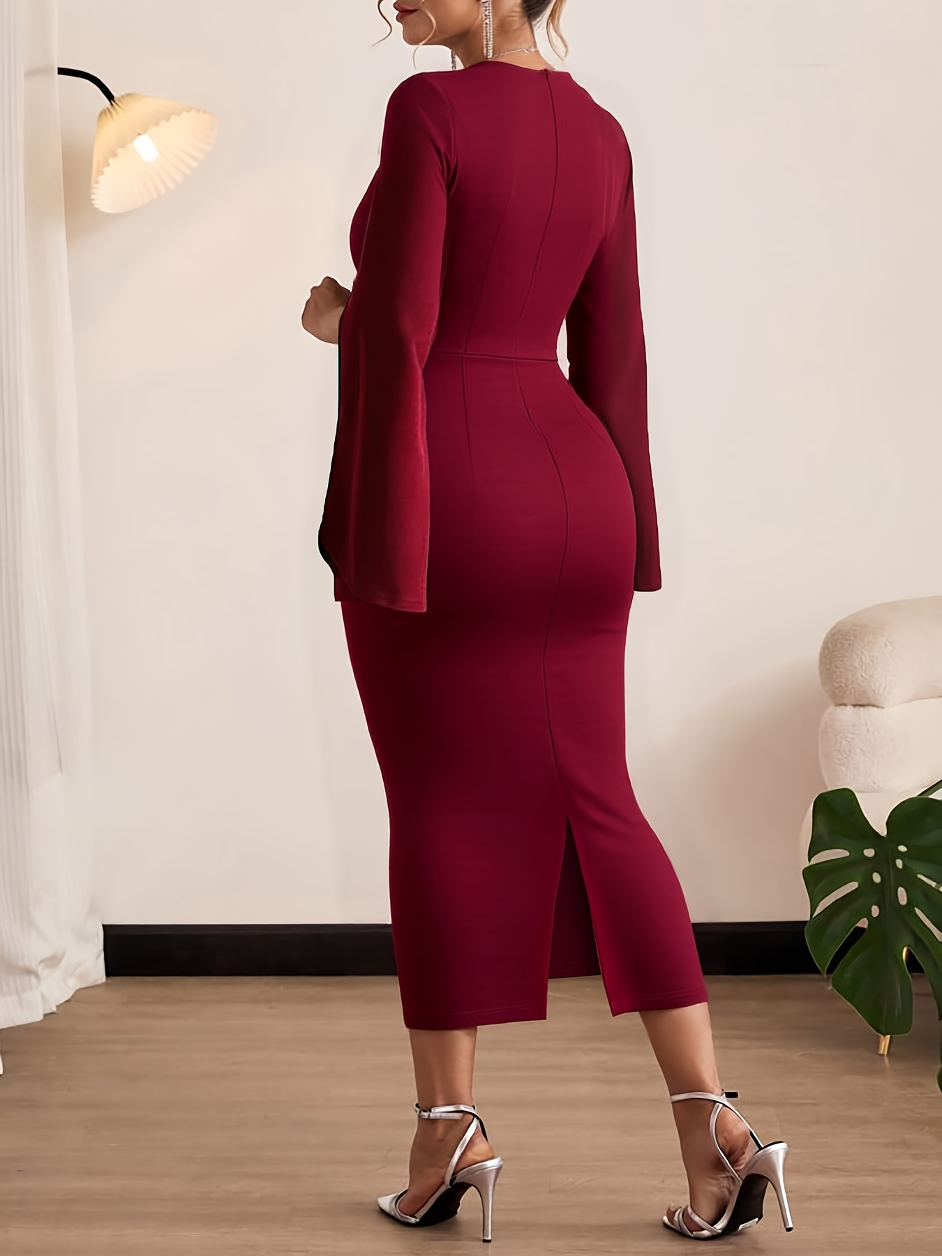 Women's Elegant Bodycon Party & Formal Dress - Burgundy/Red - Machine Washable Chic Evening Gown for Women - Formal Events & Everyday Outfits