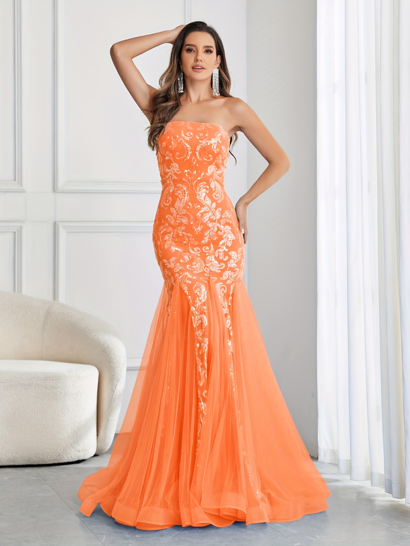 Stunning Sequined Mermaid Wedding Dress - Elegant Sleeveless Mesh Tube Gown for Party, Banquet, Engagement Ceremony, Wedding Occasion - Women's Formal Clothing for Special Events