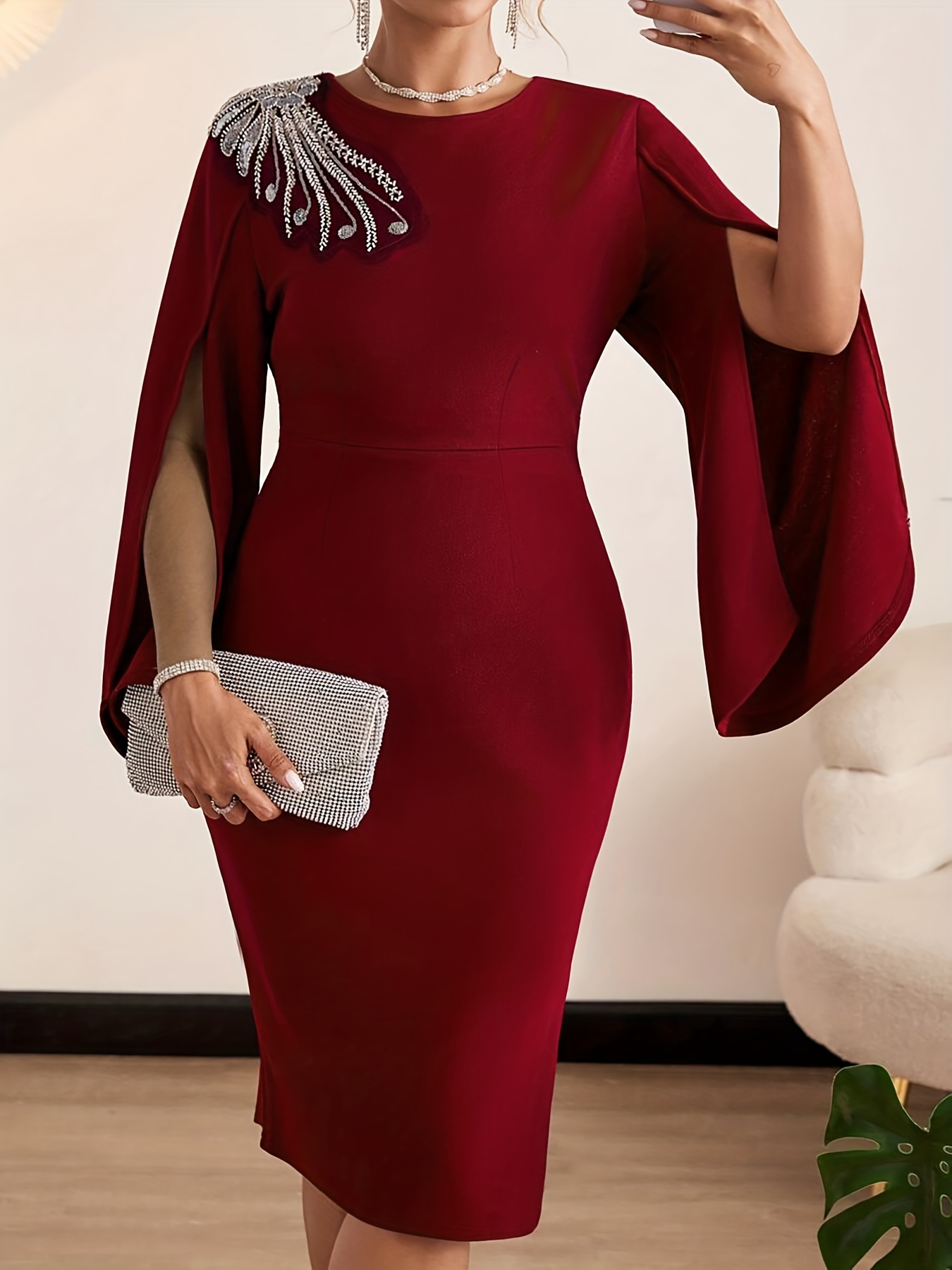 Women's Elegant Bodycon Party & Formal Dress - Burgundy/Red - Machine Washable Chic Evening Gown for Women - Formal Events & Everyday Outfits
